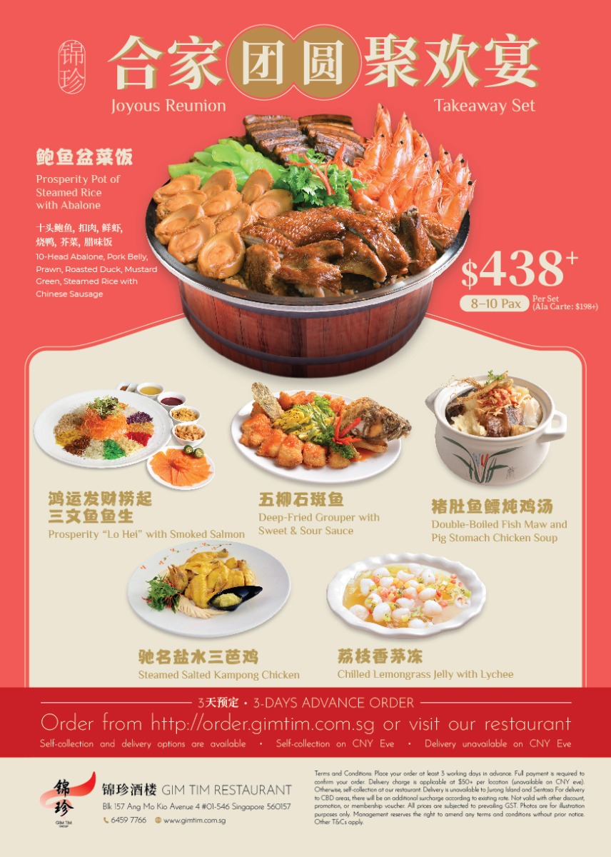 Want to stay at home this coming lunar new year eve? No problem! Order and pick up our 6-in-1 Joyous Reunion Takeaway Set (for 8-10pax) to enjoy your reunion dinner with your family at the comfort of your home.